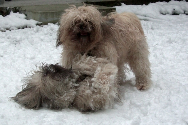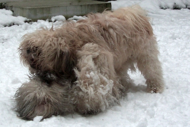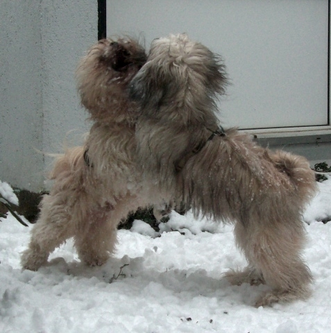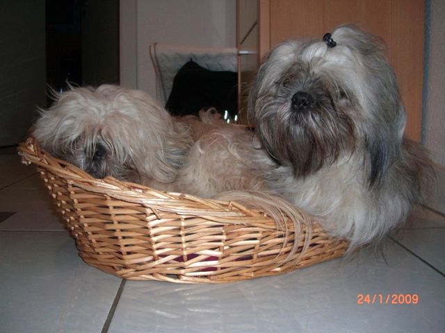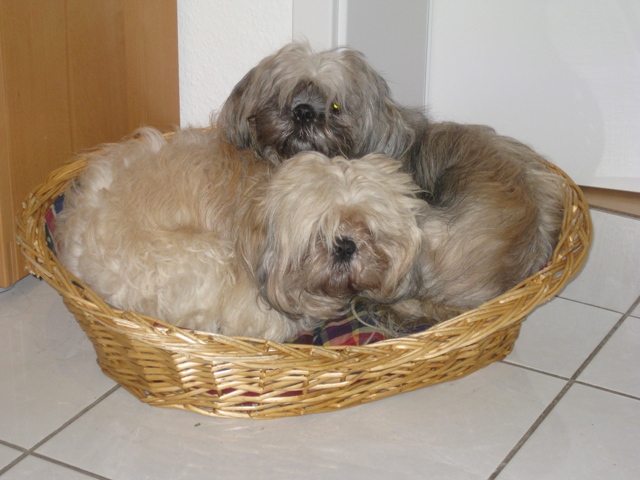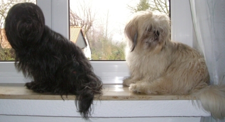 als "Heilige Hunde" lebten. Sie existierten schon, als Die tibetische Zivilisation entwickelte sich unter Ausweitung des von Indien kommenden Buddhismus, gleichzeitig wurden diverse Bräuche aus China übernommen. Als Tribut wurden wertvolle Geschenke an den chinesischen Kaiser gegeben; so befand sich unter den Geschenken ein sorgfältig ausgesuchtes Zuchtpaar von Löwenhunden. Dem Kaiser von China gefiel es sehr gut, daß diese kleinen Tiere ihm wie die Diener des Heiligen folgten, aber erst seit der Ch`ing (Manchu) Dynastie (1643-1912) kam der Tibetische Löwenhund in China in Mode. Bis 1908, als der Dalai Lama die letzte chinesische Kaiserin, Tzu-hsi, besuchte und ihr kurz vor ihrem Tod mehrere dieser Hunde überreichte, erhielten alle Monarchen der Ch'ing-Dynastie Löwenhunde. Die Hochebene von Tibet ist bis zu 5300 m hoch, und die kleinen Hunde machten den ganzen Weg von Lhasa bis hinunter nach Peking, eine Entfernung von über 3500 km. Der Höhenunterschied beträgt etwa 5000 m. Zu überwinden war ein Weg über wildes, bergiges Land, schneebedeckt, mit reißenden Flüssen. Bei Tag herrscht ein schneidender Wind, nach Sonnenuntergang bittere Kälte. Das Tag/Nacht-Temperaturgefälle kann bis zu 35 Grad betragen. Die Reise dauerte bis zu 10 Monate, und in dieser Zeit warfen die Hündinnen in selbstgegrabenen Löchern in einer Ecke des Zeltes. Solange die Welpen noch klein waren, wurden Sie in den Gewändern (gen. Shuba) der Tibeter auf der Haut getragen, damit sie es warm hatten, und die Mutter säugte sie während der Ruhepausen. Ältere Welpen und Junghunde ritten in Körben auf den Rücken der Mulis oder rannten spielend und bellend neben ihnen her. Die Löwenhunde wurden dazu benutzt, die phlegmatischen Tibet-Mastiffs auf eventuelle Räuber aufmerksam zu machen, die die Karawanen dann verteidigten. In Peking angekommen, wurden die Löwenhunde huldvoll dem Kaiser als Tribut überreicht und in den kaiserlichen Palast gebracht, wo sie der Obhut der Eunuchen, die dafür berühmt waren, besonders viel von der Hundezucht zu verstehen, übergeben wurden. Das Leben dort war sehr ruhig und vollkommen verschieden von dem, was die Tiere gewohnt waren; dies macht ihre unglaubliche Fähigkeit zur Anpassung deutlich, eine Eigenschaft, die sie auch heute noch besitzen. Hier wurden sie in kostbaren Pavillons mit Marmorböden gehalten. Täglich hatten sie Auslauf im Freien und wurden regelmäßig gebadet. Ebenso wurden ihnen verschiedene Kunststücke beigebracht. Im königlichen Zwinger gab es außer ihnen noch Möpse und Pekingesen (Pekinesen), letztere wurden auch Chinesische Löwenhunde genannt. Die Eunuchen untereinander hatten einen Wettstreit, wer die schönsten Tiere für den Kaiser und seine Damen züchtete. Symbolische Farben und Abzeichen wurden hoch belohnt, und kein Tibetischer Löwenhund durfte mehr als etwa 5 1/2 kg wiegen, wenn er bei Hof gefallen wollte. Eine der königlichen Regeln hieß: "Laßt den Löwenhund klein sein". Gold, die Kaiserliche Farbe Chinas, war überaus bevorzugt, obwohl auch andere, wohlgezeichnete Farbkombinationen gezüchtet wurden. Eine weiße Blesse auf der Stirn, das "heilige Zeichen Buddhas", war bei den Mehrfarbigen hochgeschätzt, ebenso eine weiße Rutenspitze. Um die gewünschten löwenartigen Proportionen zu erhalten, kreuzten die erfahrenen Eunuchen manchmal den tibetischen mit dem chinesischen Löwenhund, dem Kaiserlichen Pekingesen, und so wurde der Shih-Tzu kürzer im Fang und auf den Beinen als der Lhasa Apso und eine liebenswerte Mischung des Charakters - mutig wie Löwen und zugleich treu und liebevoll, unabhängige und doch ergebene Begleiter, und dazu weise, wie sich das für "Inkarnationen" von menschlichen Wesen gehört! Es ist auch anzunehmen, daß der Malteser, der in China während der Tang-Dynastie (618-907 n. Chr.) vom byzantinischen Kaiserreich nach China kam, ein Vorfahre des Shih-Tzu ist. Tzu-hsi, die letzte Kaiserin von China, die am Ende der Manchu Dynastie allein herrschte, war besonders an der Hundezucht interessiert und soll täglich einen Besuch im königlichen Zwinger abgestattet haben. Ihre Hofdame, Prinzessin Derling, berichtet, wie die Eunuchen ihr von den Hunden Kunststückchen vorführen ließen, was diese mit Begeisterung taten, und daß die Hunde der Kaiserin aufs Wort gehorchten. Der "Alte Buddha" hat die Hunde gewissenhaft inspiziert und Ratschläge zur Zucht gegeben. Soweit bekannt, wurden keine Abstammungsnachweise geführt, aber besonders schöne Tiere wurden von Hofmalern auf Pergamentrollen verewigt, die für zukünftige Zuchtprogramme als Unterlagen dienten. Eine solche Rolle stellt einen mehrfarbigen Shih-Tzu dar mit dem Bildtext: "Aus dem Tibet und sehr selten; sein Charakter ist der eines menschlichen Wesens". Während der Regierungszeit der Kaiserin Tzu-hsi waren selten weniger als 100 Hunde im Palast. Nach dem Tod der Kaiserin Tzu-hsi 1908 verlor man das Interesse an einer konsequenten Hundezucht auf Typ. Die Zuchttiere wurden verteilt, aus dem Palast herausgeschmuggelt und von den Eunuchen an Chinesische Edelmänner verkauft oder als Geschenke an wichtige ausländische Besucher abgegeben. Nach dieser Zeit gab es bis Ende der 30er Jahre viele Unklarheiten bzgl. des korrekten Aussehens und Namens dieser Hunde. Außerhalb des Palastes existierten in China derzeit verschiedene Typen, die vermischt und unter den verschiedensten Rassebezeichnungen bekannt waren. 1923 wurde der Chinesische Kennel Club Shanghai gegründet, aber erst 1930 wurden Hunde diesen Typs auf Ausstellungen gezeigt. Der Richter, ein Mr. A. de Sowerby, drang unaufhörlich darauf, daß diese Rasse in China einen eigenen Standard bekam, der den Typ und Rassekennzeichen bestimmen sollte. Dieser Standard wurde 1934 erarbeitet, aber nur wenige, der damals gezeigten Hunde, entsprachen diesem. Leider wurden nach der Besetzung Chinas durch die Japaner im Jahr 1937 weitere Ausstellungen unmöglich, und als im Januar 1949 die Kommunisten in China an d